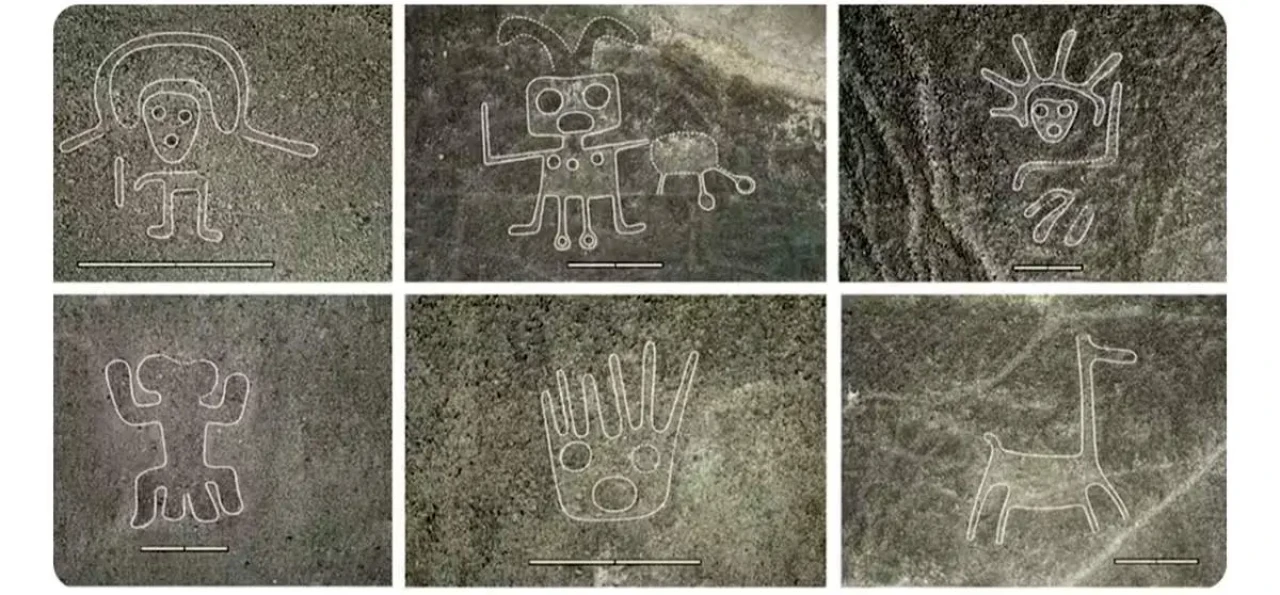 حدود 2000 سال پیش، تمدنی پیشا-اینکایی مجموعهای از نقوش عظیم را روی دشت خشک ساحلی پرو حک کرد. این خطوط تا دهه 1930 و پرواز هواپیماها بر فراز منطقه تقریباً ناشناخته بودند. تاکنون بیش از هزار طرح شناسایی شده است: خطوط مستقیم تا 50 کیلومتر، اشکال هندسی، و نقوش جانوری مانند عنکبوت، مرغ مگسخوار، میمون، نهنگ، مار دوسر، سگ و یک پیکره انسانی معروف به «فضانورد».