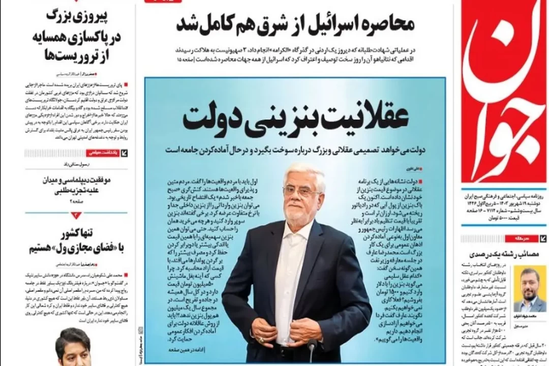 روزنامه جوان که پیشتر هم در یادداشتی به قلم عبدالله گنجی تلویحا به دولت وعده داده بود اگر در انتصابات و رویکردهای سیاسی وفاق را چنانکه آنها تعریف میکنند، لحاظ کند از همراهی اصولگرایان در جراحیهای اقتصادی مثل افزایش قیمت بنزین برخوردار خواهد شد؛ امروز نوشته: «هم شخص رئیسجمهور و هم حالا معاون اول او حرف دل خود را درباره نوع مواجهه غلط با قیمت بنزین زدهاند. اما رئیسجمهور در زمان تبلیغات انتخابات مجبور شد حرف خود را پس بگیرد یا تعدیل کند که حرجی بر این کار او نیست. بعد از انتخابات هم یکیدوبار آن حرف دل تازه شد. حالا همان احتیاط را هم معاوناول دارد و گفته است که «فعلاً نمیخواهیم کاری کنیم»، اما این سخن، خود به این معناست که «بعداً شاید چنین کنیم». یکی از جلوههای وفاق باید همراهی در همین جراحیهای اقتصادی باشد.»