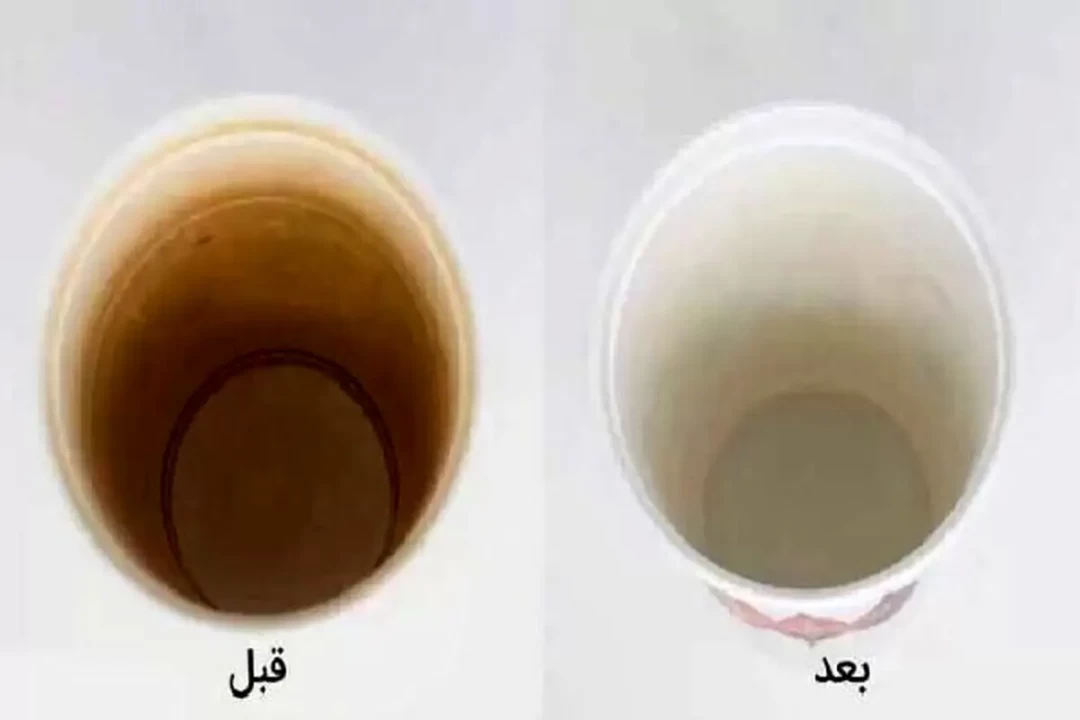 سپس فنجان ها را تمیز با آب شستشو بدهید. به همین راحتی فنجان ها را بدون این که از مواد شیمیایی استفاده کنید می شود تمیز کرد.